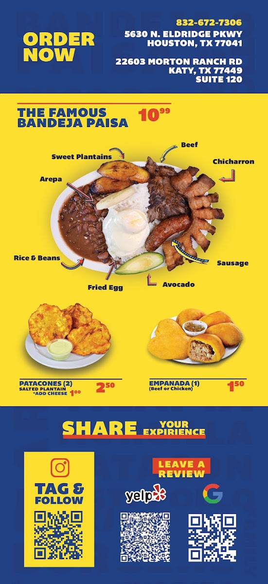 Highlights of the menu include the Bandeja Paisa, a fulfilling dish packed with diverse flavors, and the Paisa Plate, complemented perfectly by sides of yucca, mac and cheese, and mashed potatoes. Patrons rave about the Roasti Chicken, served in generous portions alongside tempting empanadas. The warm customer service provided by staff like Alexandra and Laura enhances the dining experience, making each visit memorable.
